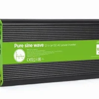 - Вихід: 230 В змінного струму +/-10% за 50 Гц (+/-1 Гц), чиста синусоїда, THD <3%, ККД 90%