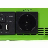 - Вихід: 230 В змінного струму +/-10% за 50 Гц (+/-1 Гц), чиста синусоїда, THD <3%, ККД 92%