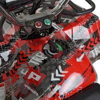 Размер колес составляет 6 дюймов (максимальный в этом классе). Представленный квадроцикл оснащен тремя мощными амортизаторами: 2 на переднюю ось, 1 сзади - под сидением.