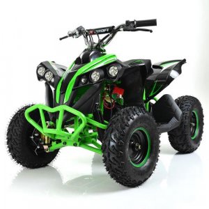 Данная модель предназначена для эксплуатации детьми возрастом от 4 до 12 лет (рекомендуется включать ограничитель на 7 км/ч для фиксации скорости для детей от 4 лет до 7 лет). Размер колес составляет 6 дюймов (максимальный в этом классе). Представленный квадроцикл оснащен тремя мощными амортизаторами: 2 на переднюю ось, 1 сзади - под сидением.