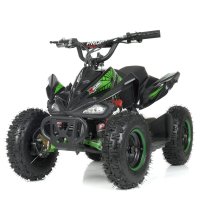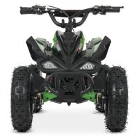 Предложенная модель электрического квадроцикла характеризуется эргономичным дизайном, ярким зеленым цветом. Мощный мотор дает возможность перемещаться со скоростью до 23 км/час. Конструкция квадроцикла оснащена световыми, звуковыми эффектами и амортизатором. Сиденье и спинка оббиты искусственной кожей. Корпус сделан из качественного пластика. Колеса - резиновые, управление производится из кабины водителя.