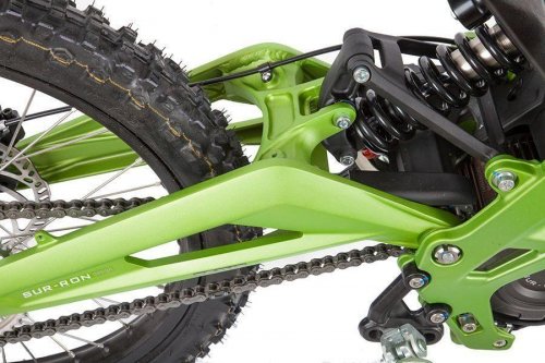 - Многорычажная подвеска байка SURRON X справляется с любыми неровностями.