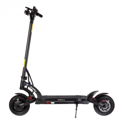 Електросамокат Mantis 10 має легку раму з авіаційного алюмінієвого сплаву 6061/6082 і важить лише 25 кг. Каркас викуваний з цільного шматка, що робить його не тільки легким, але й дуже міцним. Алюміній - чудовий вибір для приміського самоката, оскільки він набагато жорсткіший за сталь і забезпечує плавність ходу. Крім того, рама Mantis 10 складана, що спрощує його зберігання і транспортування.