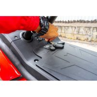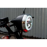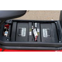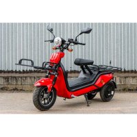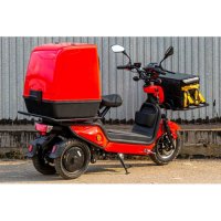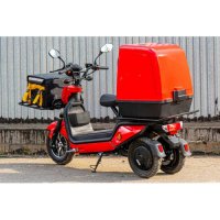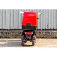 Представленная модель дополнена большой задней и небольшой передней платформой, на которые устанавливаются кофр, термобокс, термосумка или любое другое приспособление для перевозки грузов. Показатель грузоподъемности аппарата составляет 150 кг. За счет присутствия простой и стильной приборной панели с LCD дисплеем, водитель сможет увидеть всю необходимую информацию. Так же имеется противоугонная система, которая в случае попытки хищения начнет издавать громкий, привлекающий внимание звук и сопротивляться путем блокировки электромотора.