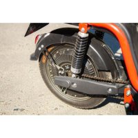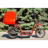 Электрический скутер VEGA CITY CAT new (DELIVERY) имеет заднюю грузовую платформу, на которую можно устанавливать различные специальные кофры и термобоксы. Мягкая подвеска и удобное сиденье делают поездку более комфортной. Электродвигатель мощностью 500Wпитается от литиевой батареи от 48V объемом 30Ah, способен разогнать VEGA CITY CAT new (DELIVERY) до35 км/ч и проехать до 60 километров на одном заряде. Простая и стильная приборная панель с LCD дисплеем покажет всю необходимую информацию, а бесключевой доступ позволит обращаться со скутером быстрее и проще. Надежные тормоза помогут остановиться в любой момент, а в ночное время освещать путь будет мощная светодиодная фара. Аккумулятор при необходимости можно снять и забрать с собой для подзарядки, а фиксируется он электрическим замком, управляемым с пульта. Так же имеется противоугонная система, которая в случае попытки хищения начнет издавать громкий, привлекающий внимание звук и сопротивляться путем блокировки электромотора.