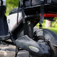 Большие колеса, невероятная выносливость и яркий LCD дисплей для хорошей видимости во время дня и ночи. Не обошлось в элеткроскутере без вместительных вещевых корзин и удобных багажных креплений. Задняя платформа рассчитана на крупногабаритную поклажу, а самое важное то, что она предусматривает возможность крепления вместительного курьерского рюкзака, который можно снять в любой момент и отправиться с ним к месту назначения.