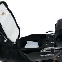 Електроскутер Maxxter NOVA — це повноцінний транспортний засіб, який відповідає всім відомим стандартам і обладнаний запобіжниками. Тут ви знайдете габаритні вогні, поворотники, яскраві фари, звуковий сигнал, сигналізацію із системою захисту від загону, яка блокує колесо та інші корисні деталі. Скутер має кишеню для особистих речей і місткий багажник із замком.
