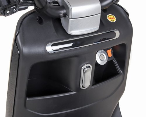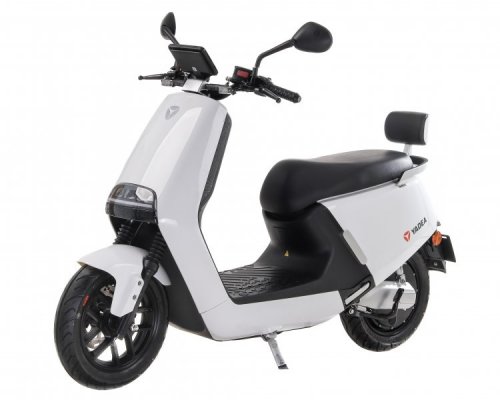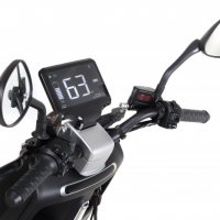 Информация о состоянии скутера отображается в любое время. В наличии приложение для смартфона, система навигации и диагностики.Питание реализуется за счет батареи нового поколения на базе элементов Panasonic 18650. Конструкция электроскутера дополнена удобным большим сидением для водителя и пассажира. Объем вместительного багажника - 26 л.Разработчики позаботились о наличии светодиодной фары G5 с низким расположением, а также надежной системы безопасности с сигнализацией и противоугонной системой.