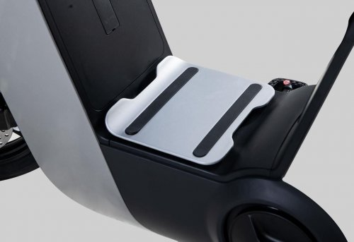 Конструкция скутера дополнена велосипедными педалями, позволяющими применять его как велосипед. Скутер дополнен съемным литийным аккумулятором мощностью 18 Ач для пробега 40 км. Особенность модели - наличие простой для чтения цифровой приборной панели.