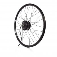 Переднє редукторне моторколесо MXUS XF07F закріплюється в обід 20/24/26/28 дюймів. Особливість даного моторколеса полягає у збільшеному коефіцієнті редукції 1/5.