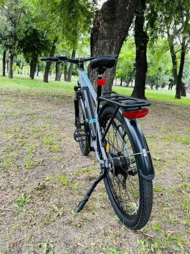 Універсальний електричний велосипед Ranger Man 820M дає змогу переміщатися без використання електротяги, у режимі PAS або повністю на електричній тязі без використання педалей. Цей велосипед витримає навантаження до 130 кг, має стильний і ергономічний дизайн. Електровелосипед обладнаний зручним спортивним сидінням, багажником, крилами, свербіж-дисплеєм, фарами, підніжкою. Сам велосипед досить легкий, з алюмінієвою рамою 17". У моделі Ranger Man 820M застосована довговічна та легка літієва батарея 36V 12.5A/H, яка стильно інтегрована в раму велосипеда. Сам мотор розташований на задньому колесі 36V/350W. Сім швидкостей SHIMANO 1*7 SPEED. Діаметр коліс 27.5". Електровелосипед Ranger Man 820M здатний розвинути швидкість 25-30 км/год. В середньому дальність поїздки становитиме 40-45 кілометрів, на цей показник також впливає дорожня місцевість підйоми та навантаження на електровелосипед.