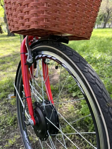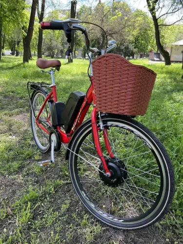 Ця модель електровелосипеда Titan призначена для пересування міською місцевістю. Велосипед виготовлений у червоному кольорі, має якісний і надійну заводську конструкцію. Обладнаний м'яким сидінням, що дасть змогу з комфортом подолати тривалі дистанції, містким кошиком і багажником. Цей велосипед обладнаний потужним двигуном, який дасть змогу легко та швидко переміщатися міськими вулицями та крутими підйомами. Завдяки легкій конструкції електровелосипеда Neapol простий і зручний у керуванні, а також для його транспортування.