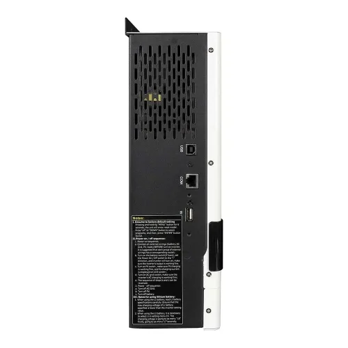 Це багатофункціональний інвертор/зарядний пристрій, що поєднує функції інвертора, сонячного зарядного пристрою MPPT та зарядного пристрою для акумулятора, щоб забезпечити безперебійне живлення. Його зрозумілий РК-дисплей пропонує користувачі, що настроюються, і доступні кнопки, такі як зарядний струм акумулятора, пріоритет змінного/сонячного зарядного пристрою і прийнятна вхідна напруга на основі різних програм.