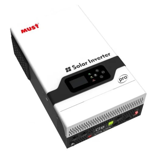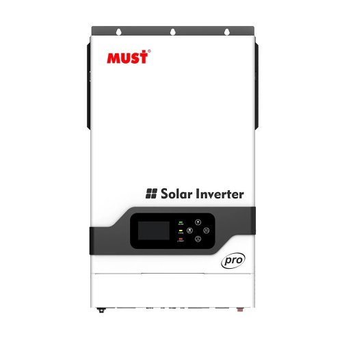MUST PV18-5248 PRO – це високоефективний інвертор з потужністю 5.2 кВт, обладнаний вбудованим MPPT контролером, що забезпечує безперебійне живлення та зменшує споживання електроенергії з мережі завдяки функції змішування енергії від сонячних панелей. Максимальна потужність сонячних панелей, підключених до інвертора, перевищує 5.5 кВт.