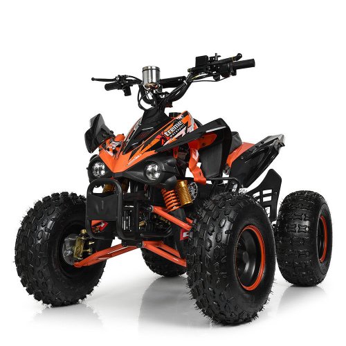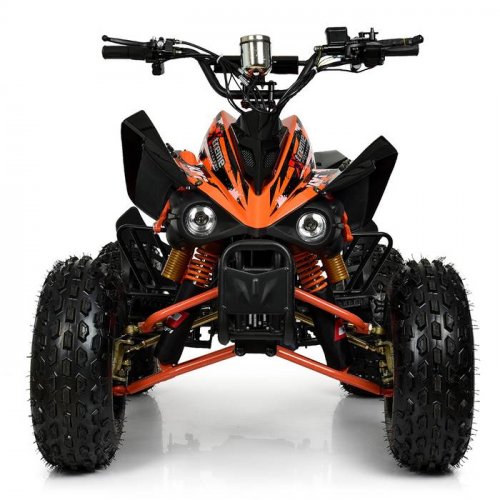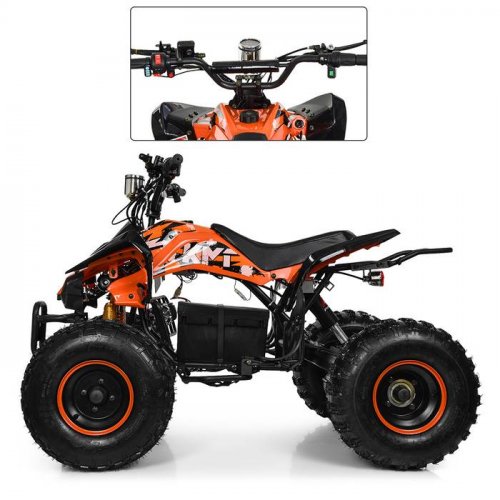 Квадроцикл имеет довольно большие размеры, максимально устойчив на поворотах. Максимальная скорость передвижения будет достигать 30 км.в.час. Также данное транспортное средство оборудовали амортизаторами отличного качества (два находится спереди, а один сзади), что позволит с макс.комфортом кататься по любому покрытию. Модель оснащена надежными тормозами -безопасное передвижение на квадроцикле. Резиновыми широкими надувными колесами 40см с широкими протекторами для максимальной маневренности и хорошей проходимости.