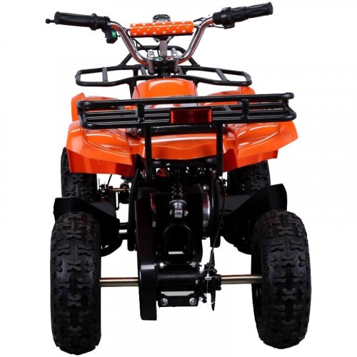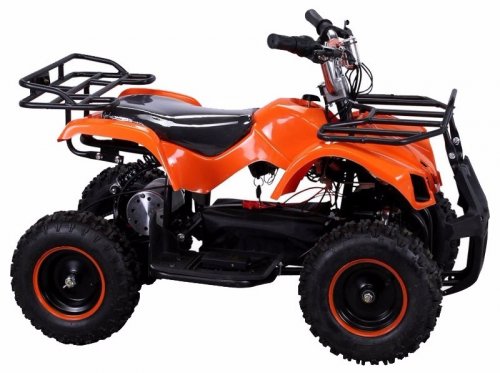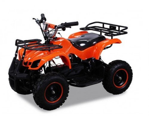 Производительный двигатель 800 Вт с эффективной системой принудительного охлаждения. Задний цепной привод, переключатель скоростей, а также дисковые тормоза (сзади и спереди) все это входит в состав данного аппарата. Специальный индикатор показывает уровень заряда. Модель оснастили качественной системой амортизации ( два мощных передних амортизатора и один задний амортизатор под сиденьем).