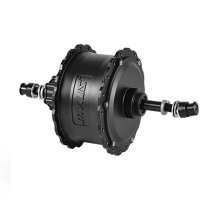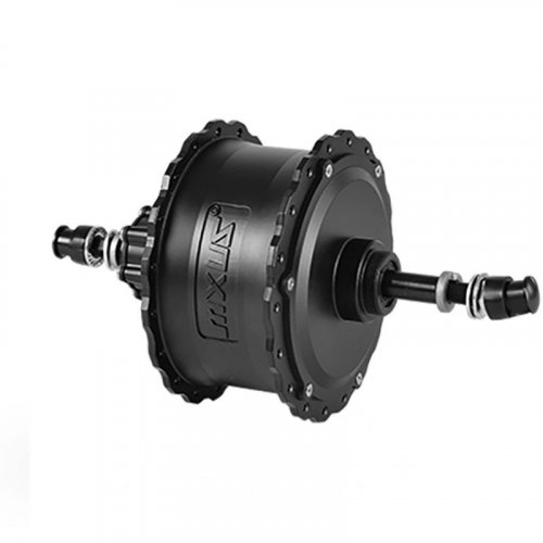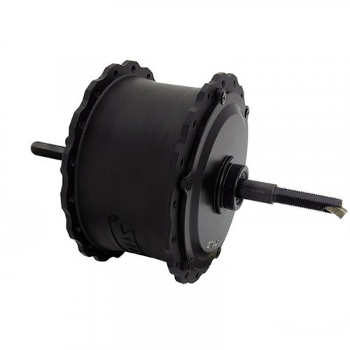 Буква "R" в названии мотора обозначает, что в данном случае звездочки устанавливаются цельной кассетой, на резьбовое посадочное место в корпусе мотор-колеса. Тип тормоза — ободной или дисковый.