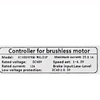 Контролер синусний KUNTENG KT48В 25A для мотор-коліс 800Вт. Він розрахований для роботи з обладнанням напруги 486В. Відмінною особливістю даної моделі є - герметичний роз'єм для мотор-колеса та наявністю двох роз'ємів для підключення передньої та задньої фар. Цей контролер і можливість підключення LED або LSD дисплея та керується синусоїдальними імпульсами.