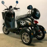 Максимальный показатель грузоподъемности – 200 кг. Движение может производиться на максимальной скорости 40 км/час, один заряд литиевого аккумулятора позволяет преодолевать до 50 км пути. Предложенный трицикл оснащён новым контроллером, который делает этот трехколесный электроскутер «умнее», удобнее и экономичнее. Транспортное средство дополнено удобными багажниками для транспортировки грузов. А также новой оптикой, LCD дисплеем и новой системой подвески, что является гарантией лучшей проходимости и устойчивости при маневрировании.