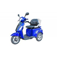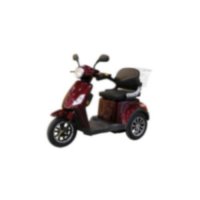 Скорость движения может варьироваться ( три скорости вперед, одна – назад). Управлять скутером максимально легко. Сиденье очень удобное, его положение можно регулировать. Личные вещи можно хранить в специальной корзинке. Модель также оснащена передней фарой и сигналами поворота, большими колесами, надежными тормозами, противоугонной сигнализацией. Зарядка производится от обычной электросети 220V. Выполнен аппарат в бордовом и темно-синем цветах.