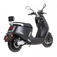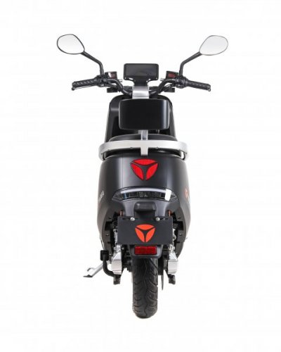 Информация о состоянии скутера отображается в любое время. В наличии приложение для смартфона, система навигации и диагностики. Питание реализуется за счет батареи нового поколения на базе элементов Panasonic 18650. Конструкция электроскутера дополнена удобным большим сидением для водителя и пассажира. Объем вместительного багажника - 26 л.