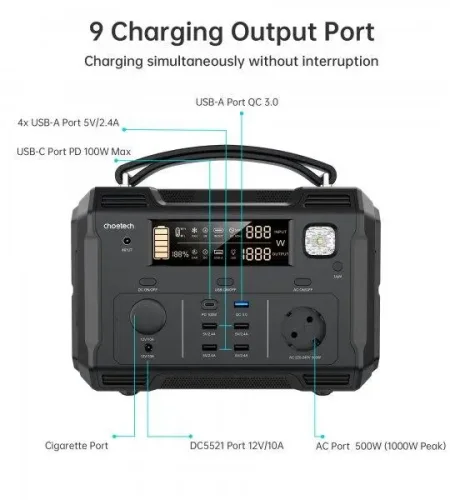 - Вхід змінного струму: 120 Вт (час заряджання ~ 5.5 год)