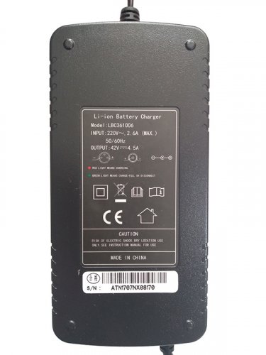 Автоматическое зарядное устройство 36В 4,5А, для литий-ионных LiNiCoMnO2 аккумуляторных батарей электровелосипеда емкостью до 20Ач.