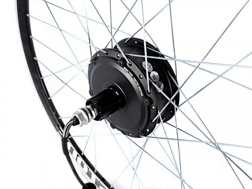 Заспицованное мотор-колесо MXUS XF08С с установленным бесщеточным двигателем. Оно предназначено для установки на заднюю ось велосипеда. Размер колеса варьируется и может составлять 20, 24, 26, 28 дюймов.