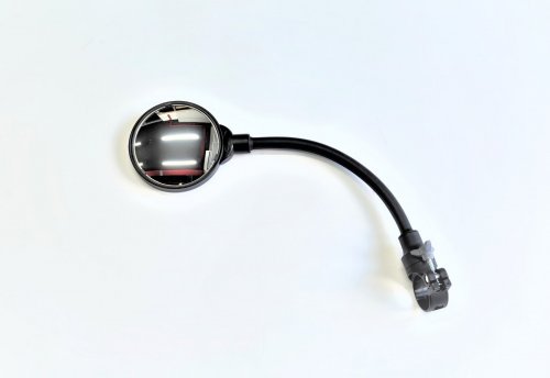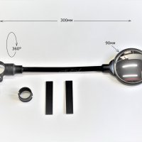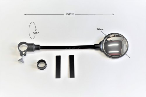 Данная модель лёгкого зеркала для двухколесного электрического транспорта имеет вращающуюся гибкую стойку со стеклом сферической формы.Благодаря компактному удобное крепление позволяет установить зеркало в ограниченном пространстве на руле и не требует снятия других элементов при установке.